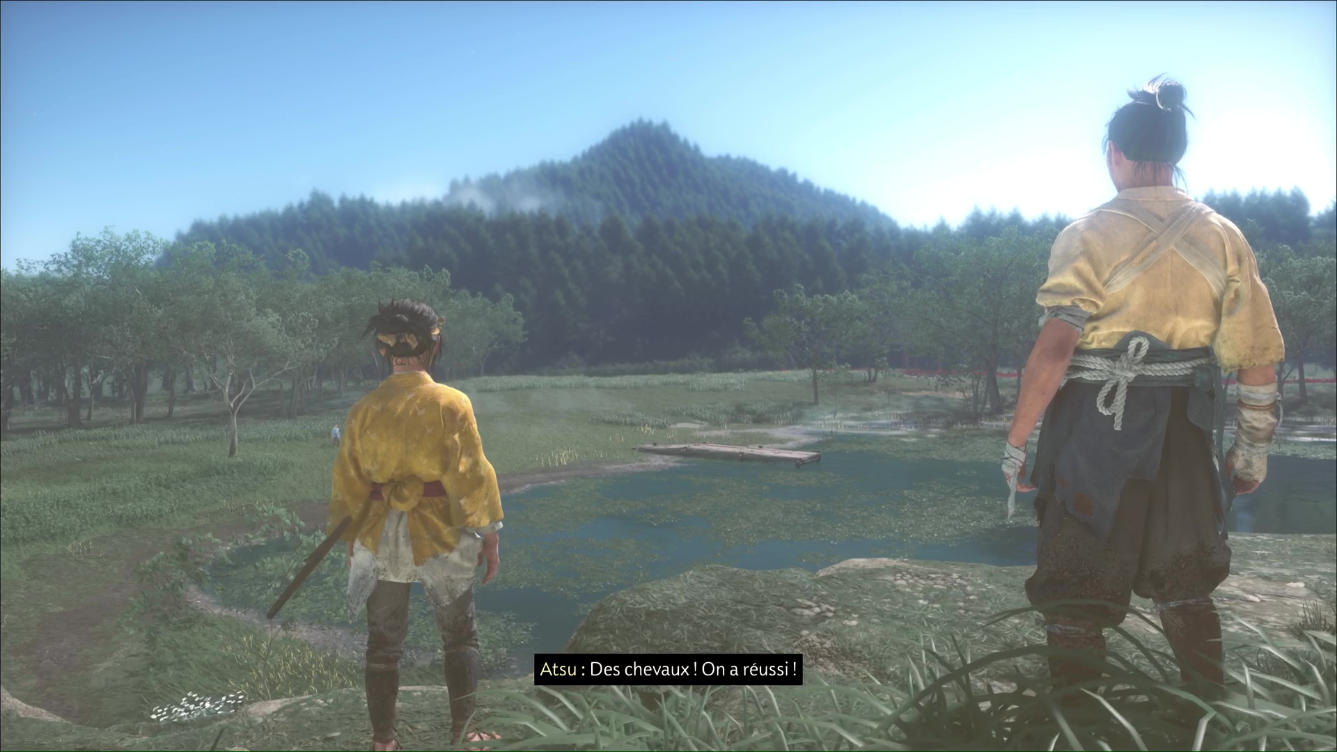 Il a besoin de récupérer ses chevaux désormais, et Atsu se propose pour aider. Vous chevauchez alors jusqu’au Bois de Shikotsu. Atsu a ensuite un flashback avec son père, un souvenir qui consistait déjà à retrouver les chevaux. Observez le crottin par terre et suivez les traces sur la droite.
