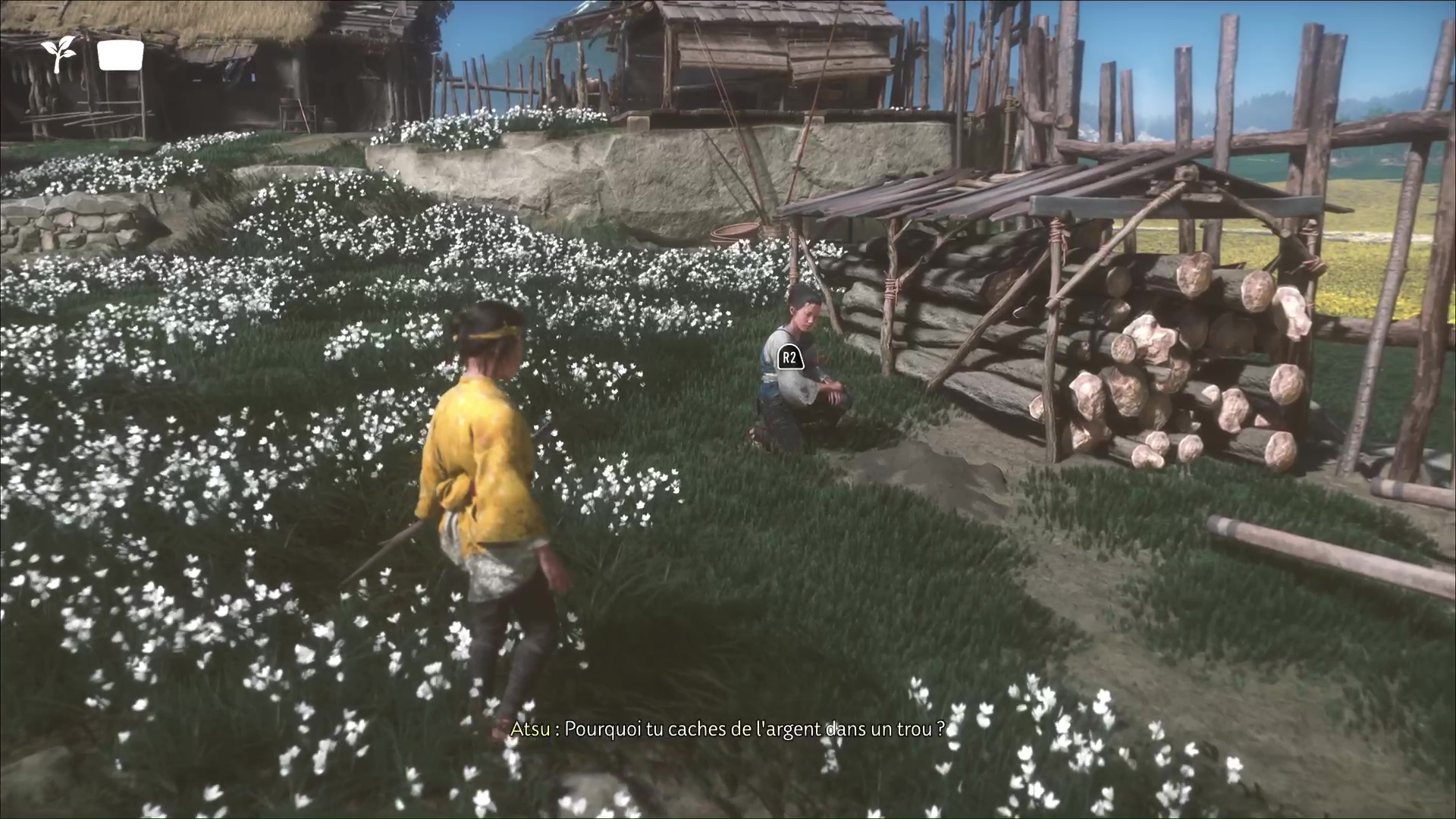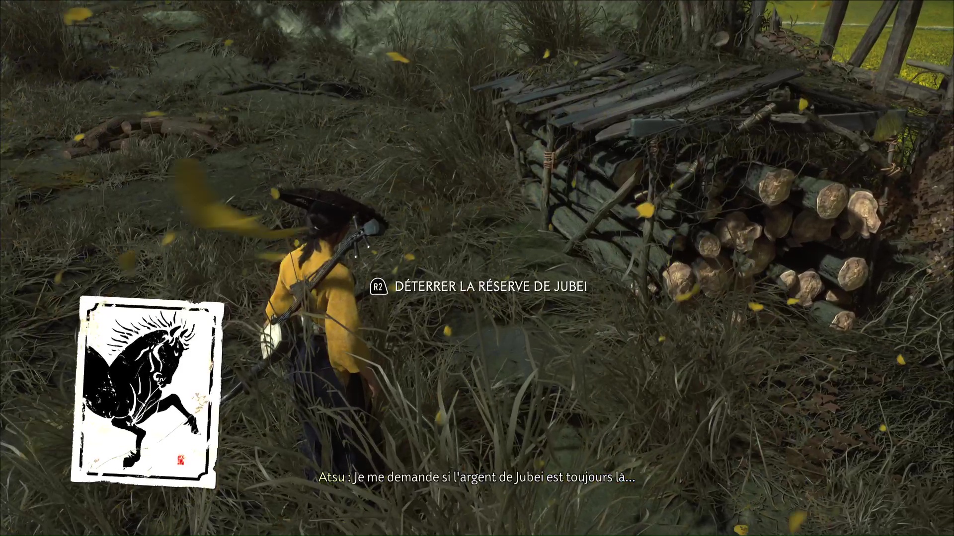 Ce récit peut déjà commencer à partir de la Maison d’enfance d’Atsu. Après avoir vécu les souvenirs du scénario. Replongez dans le passé et parlez à Jubei, près de l’entrée de la maison. Il vous parlera de sa cachette de pièces et Atsu mentionnera l’écurie, ce qui la fera apparaître sur la map.