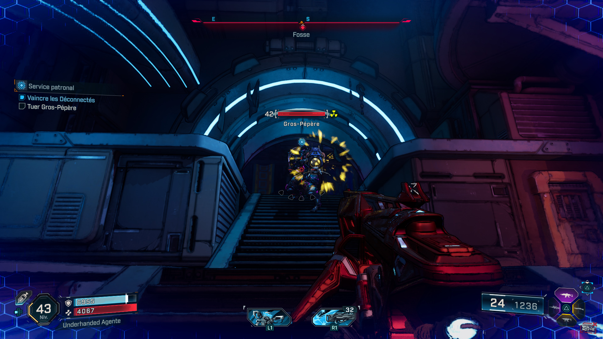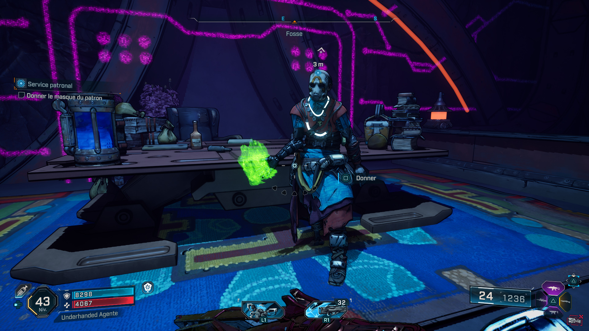 De là, retournez à la Fosse, non sans avoir à vous occuper de quelques Déconnectés, aussi bien devant l’entrée qu’à l’intérieur de la discothèque. Là, où Gros-Pépère vous attend également pour en découdre… Quoi qu’il en soit, après le combat, retournez voir le patron dans son bureau et rendez-lui son masque pour terminer la mission.