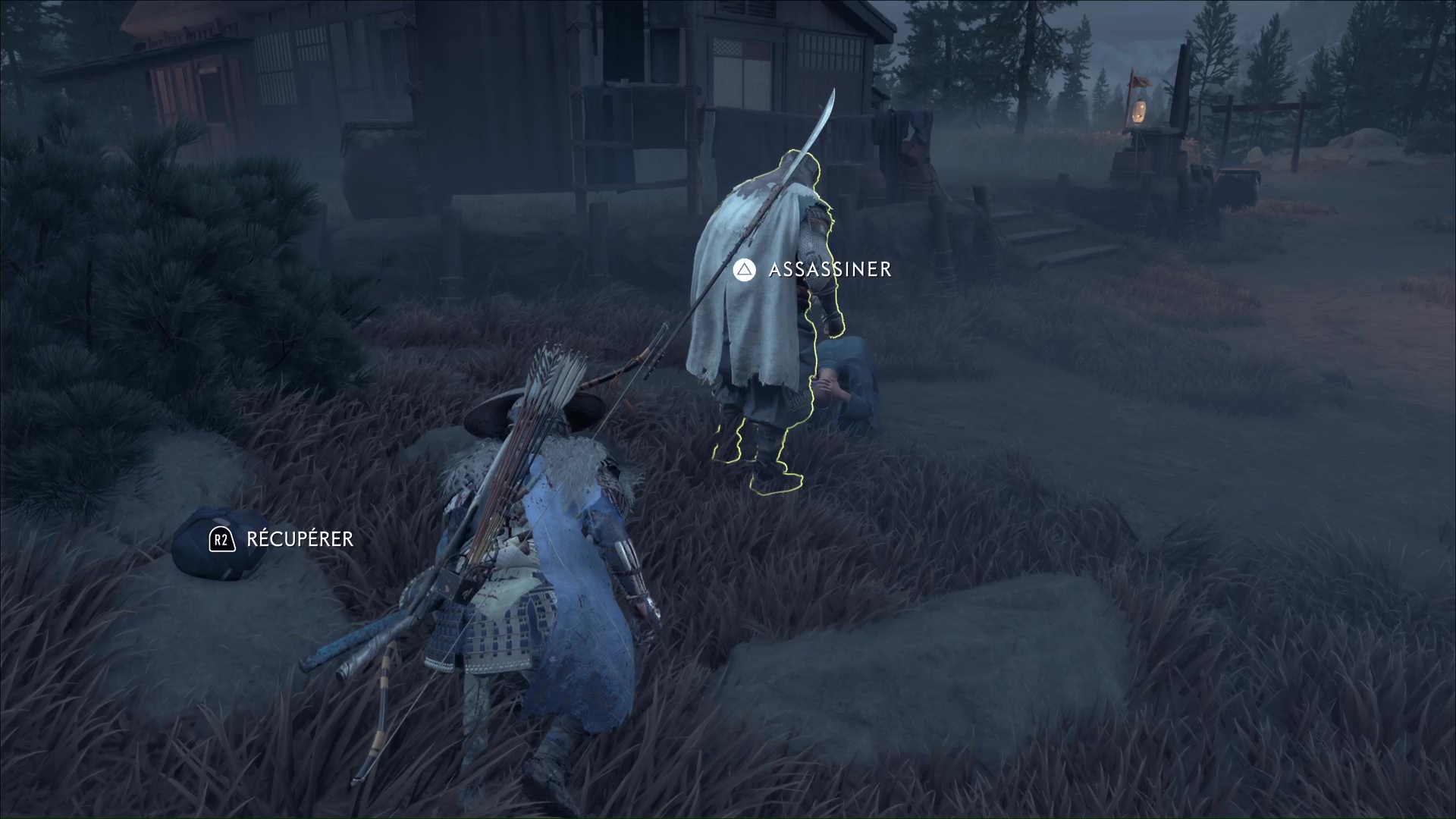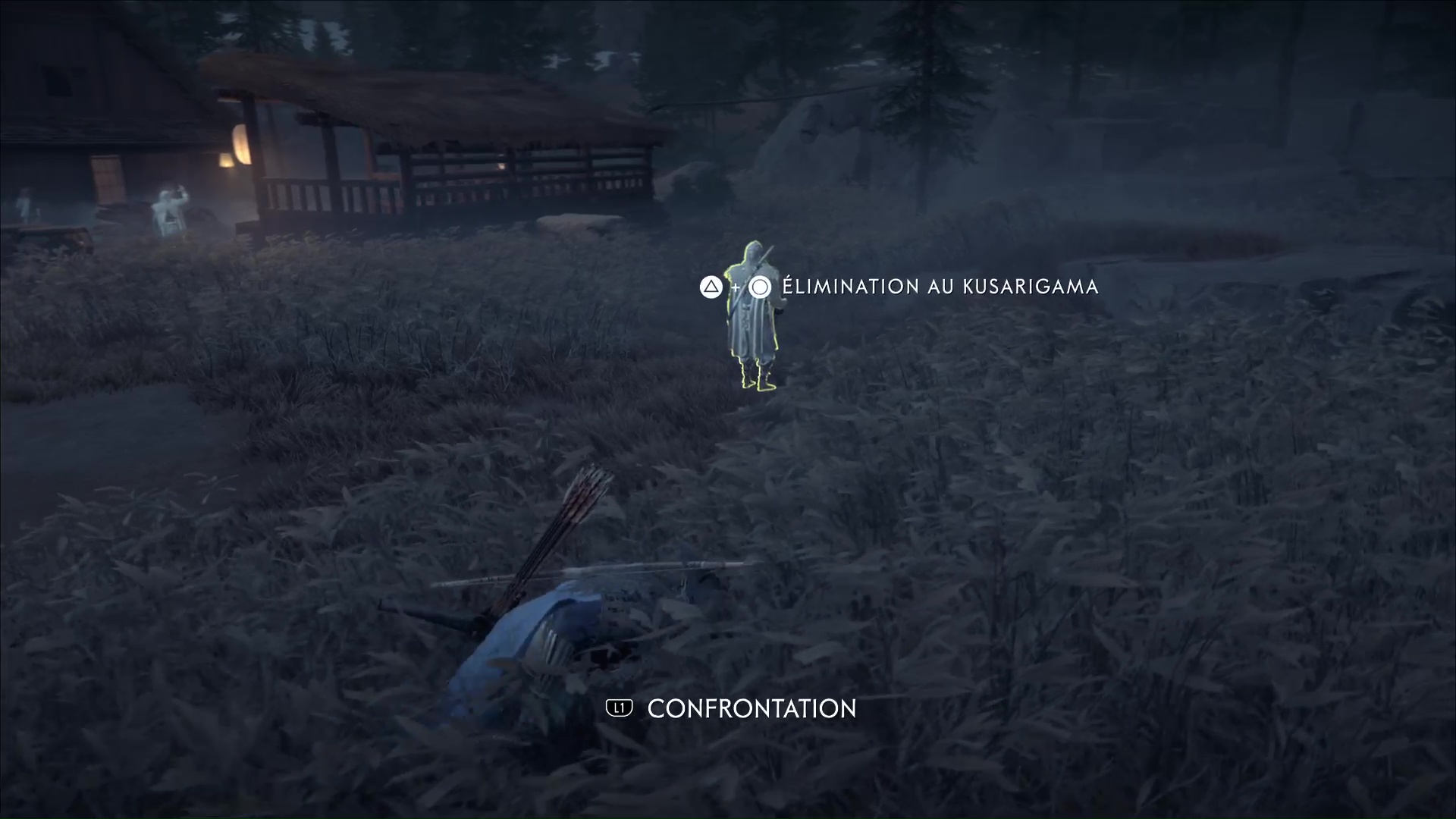 Après ce deuxième combat, repartez pour arriver, au bout de quelques mètres, au Village abandonné. Tadakichi est ici, mais d’autres Neuf-Queues également. Vu que vous avez l’avantage de la surprise, vous pouvez soit lancer une Confrontation, soit tenter d’éliminer tout ou partie des ennemis de la zone de manière discrète.