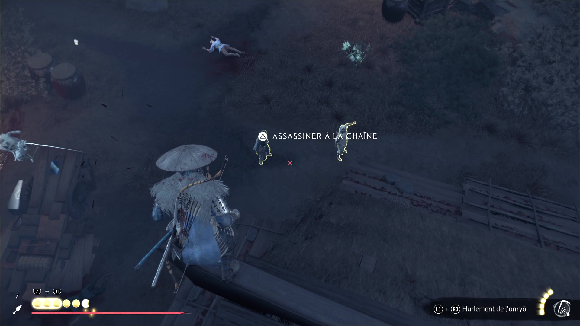 En ce cas, servez-vous des hautes herbes et du kusarigama, si vous avez la compétence, pour éliminer silencieusement. Tadakichi est surveillé par une brute vers le centre de la zone, donc essayez de terminer par elle.