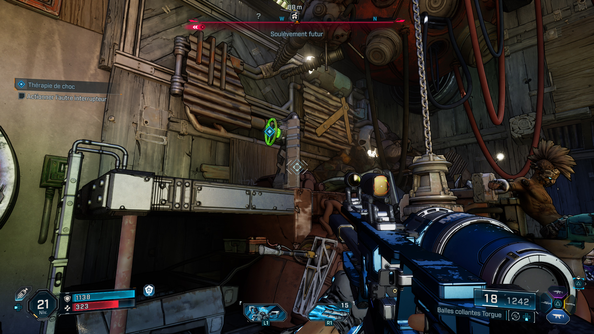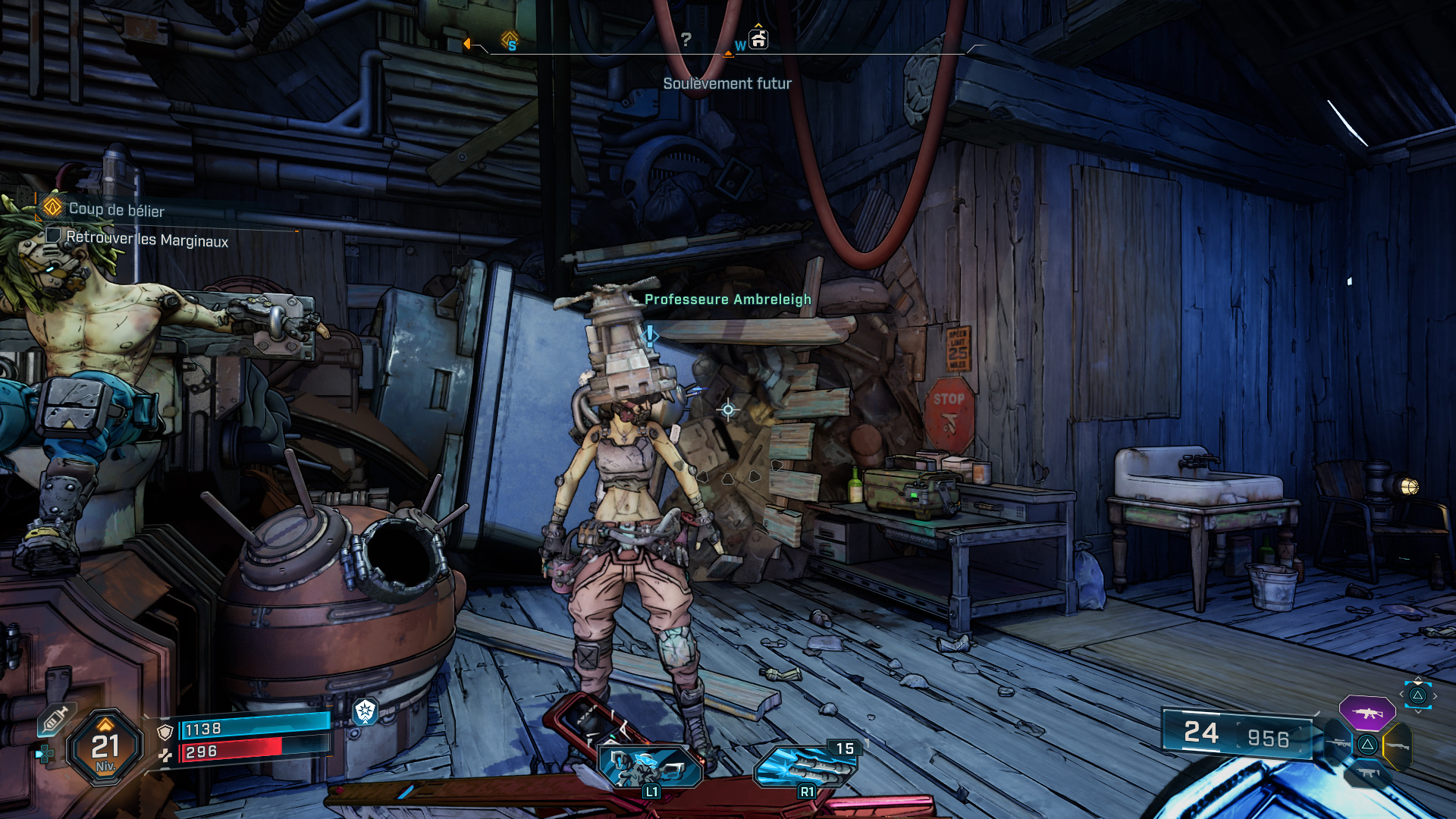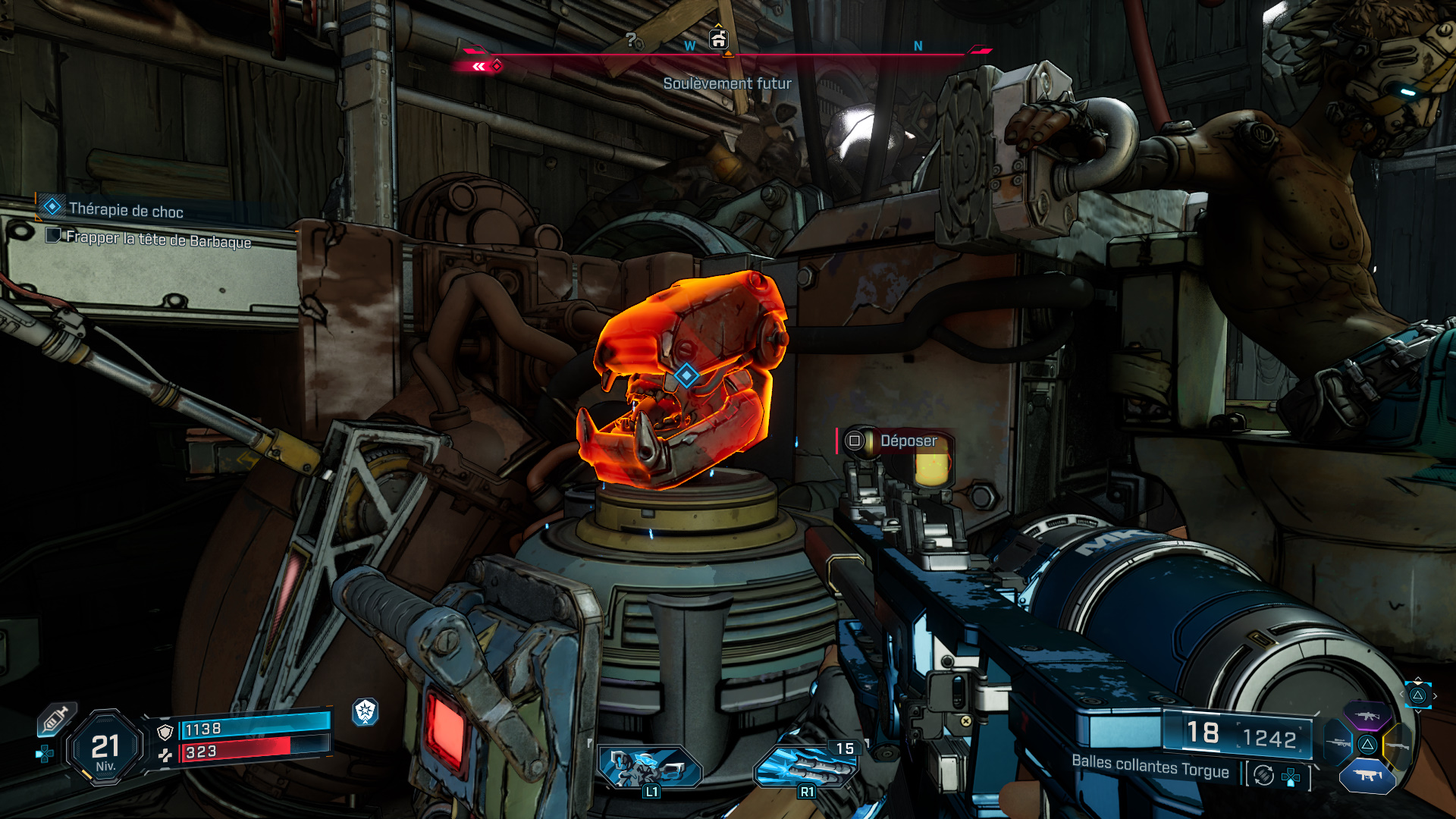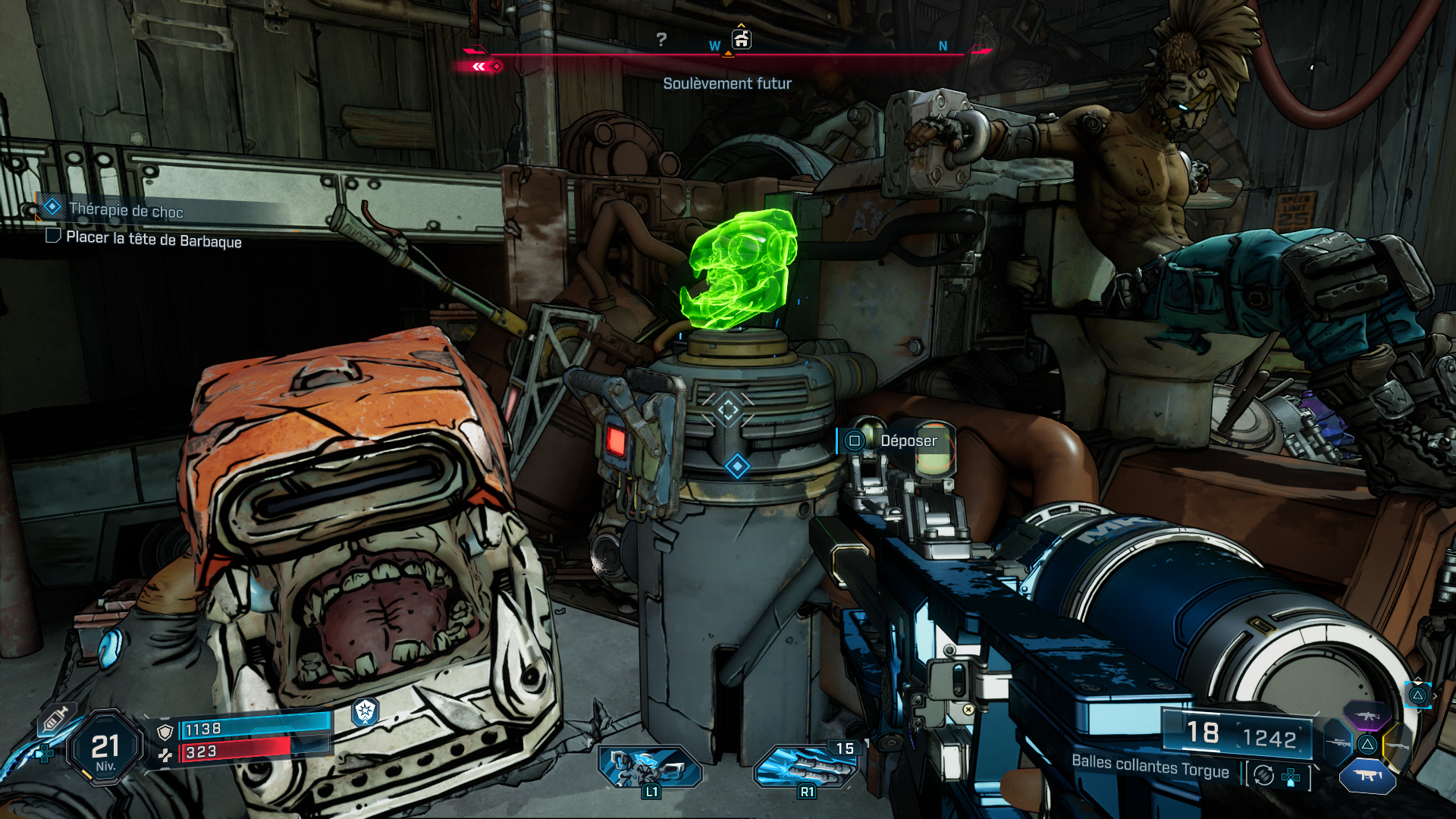Essayez alors d’actionner le levier à gauche pour recevoir votre nouvel objectif, celui de trouver un Barbaque Brutal pour récupérer son cerveau. Vous pouvez facilement trouver ce type d’ennemi non loin de là vers le nord, tuez-le et ramassez sa tête pour l’apporter à la Professeure Ambreleigh.