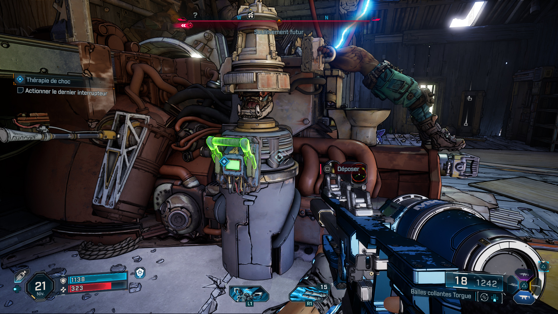 Juste après avoir placé la tête de Barbaque à l’endroit indiqué, voilà qu’elle se met à parler… Frappez-la pour la faire taire, et tirez sur le levier à gauche dans la foulée pour démarrer le processus. Actionnez ensuite la valve juste au-dessus et terminez en actionnant le dernier interrupteur pour admirer le résultat de cette expérience quelque peu salissante, mais aussi mettre un terme à cette mission.