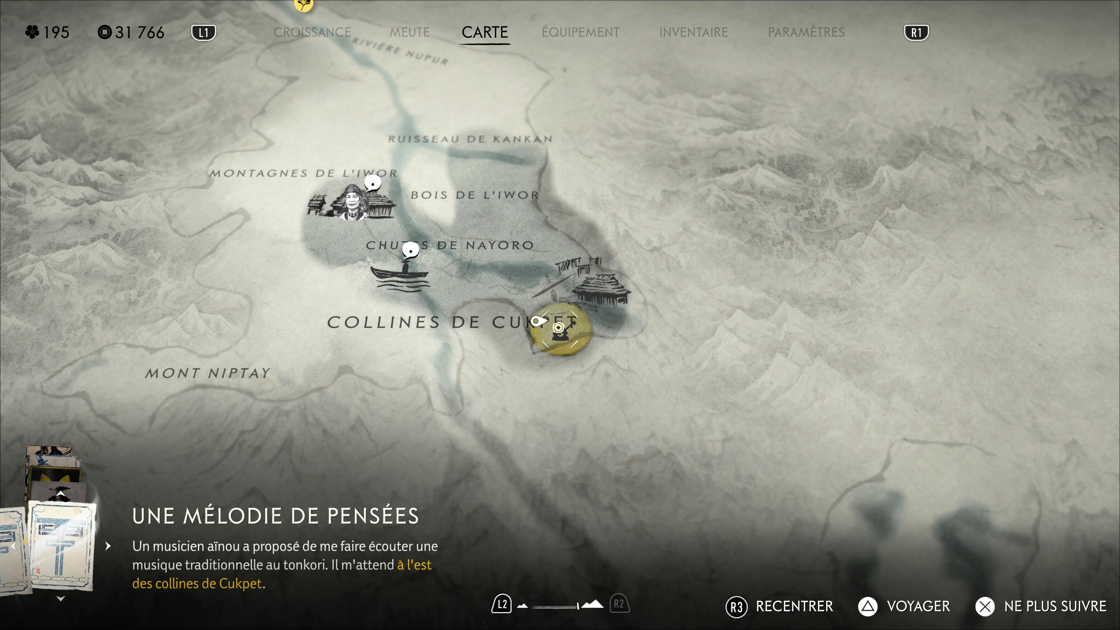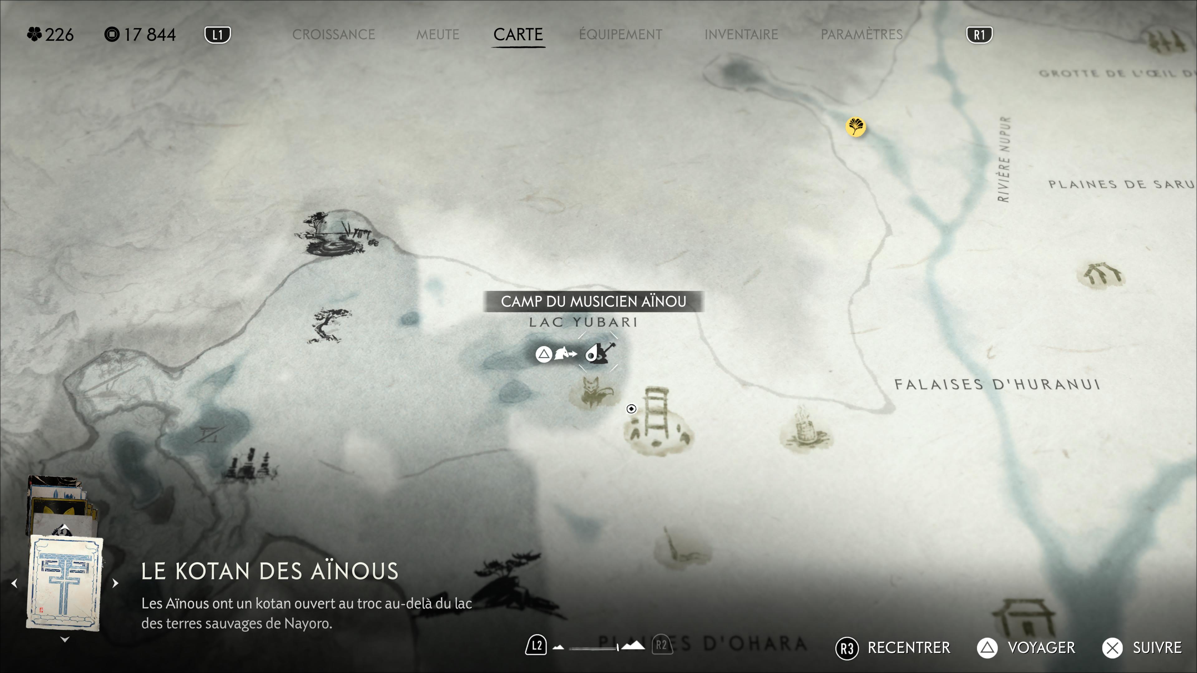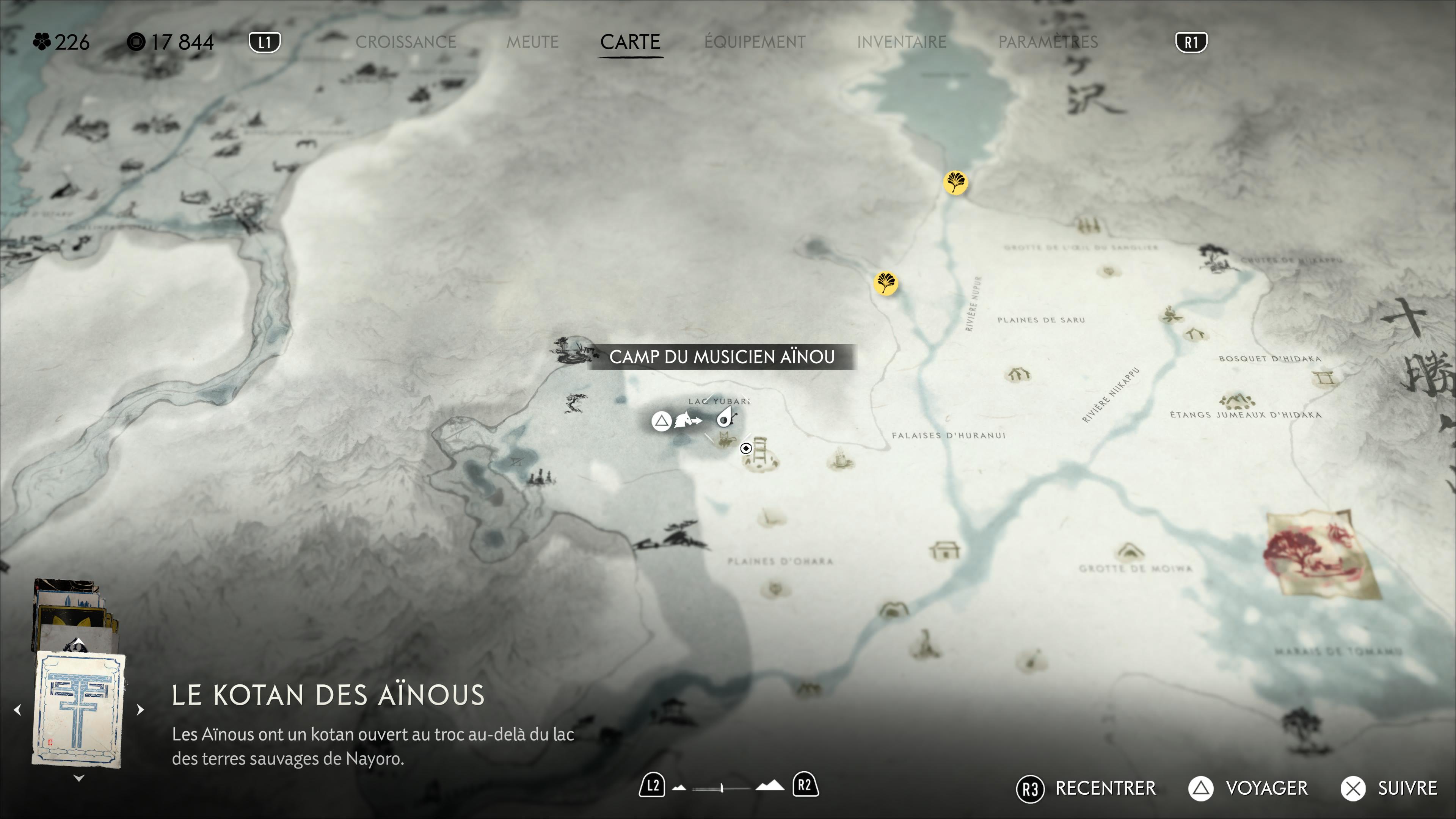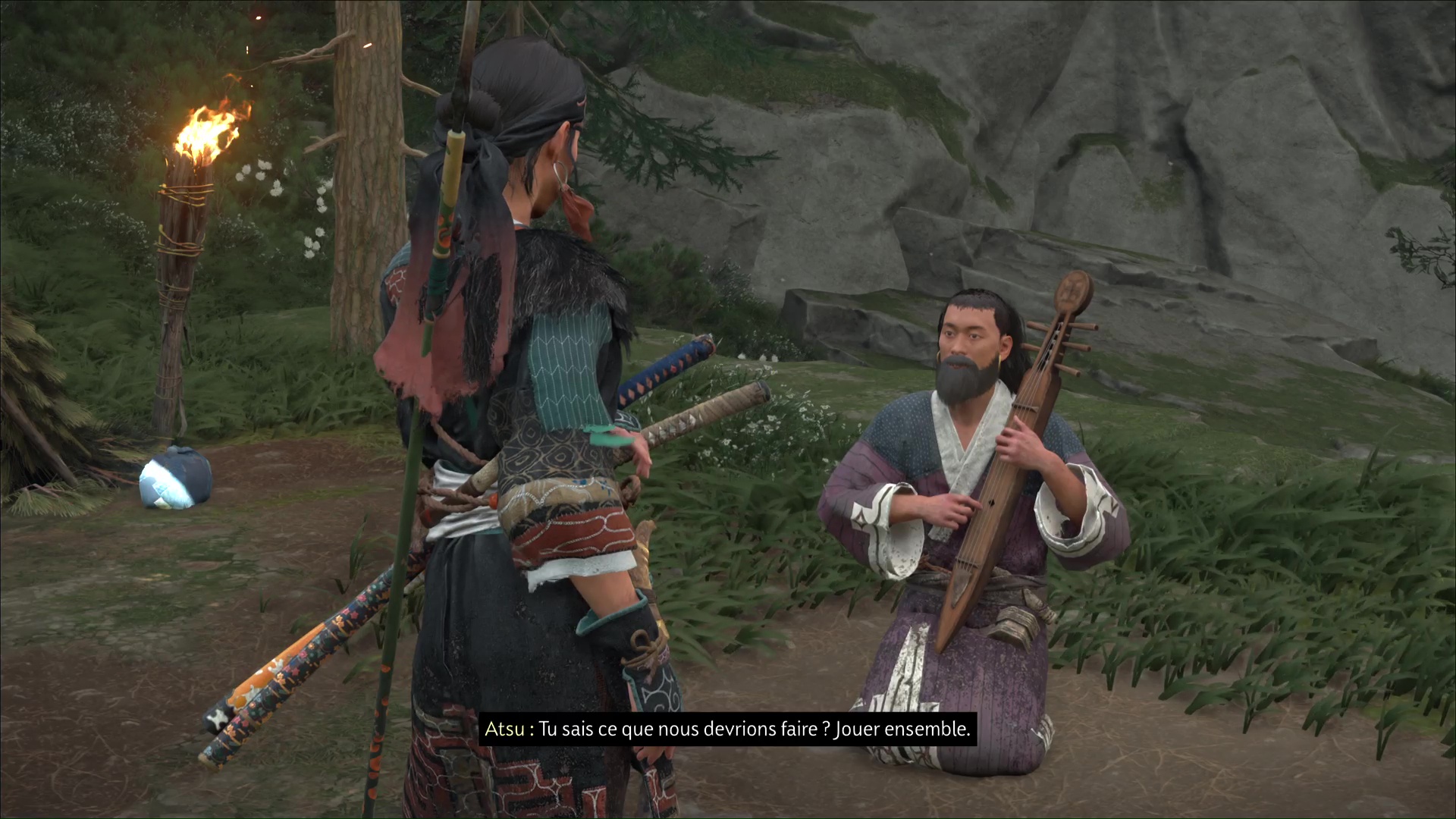 Après avoir aidé un musicien aïnou dans les Monts Tokachi, dans le cadre de la quête « L’âme d’un instrument », celui-ci avait fini par donner rendez-vous à Atsu au sein des Terres sauvages de Nayoro. Une invitation qui lance un deuxième récit à compléter dans ce Ghost of Yōtei avec, à son terme, l’acquisition d’une nouvelle mélodie pour le shamisen.