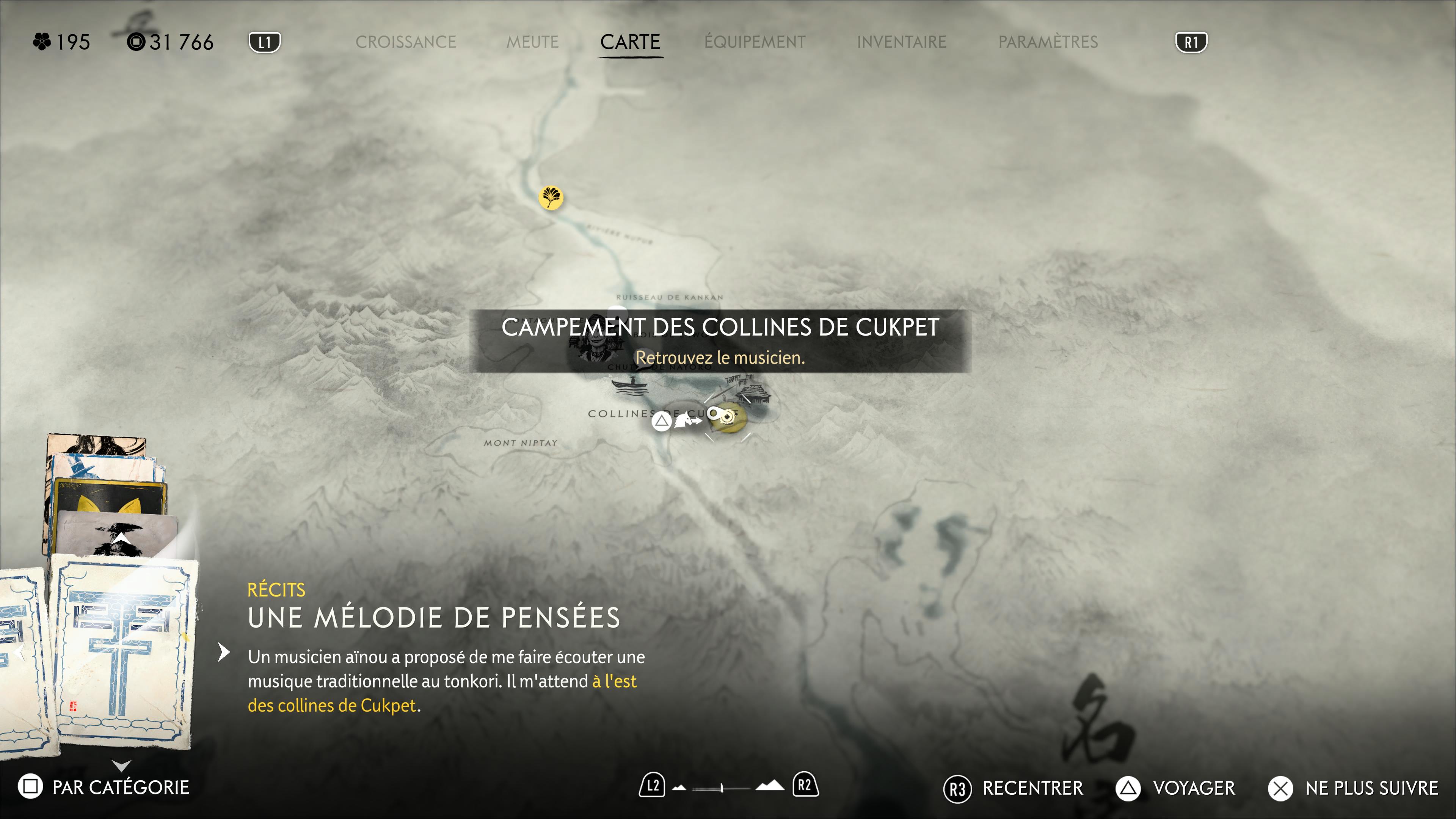 Le pré-requis au lancement de ce récit de Ghost of Yōtei est donc clair : terminer la quête « L’âme d’un instrument » dans les Monts Tokachi. Dans la foulée, ce récit démarre, et il faut attendre de rejoindre les Terres sauvages de Nayoro.