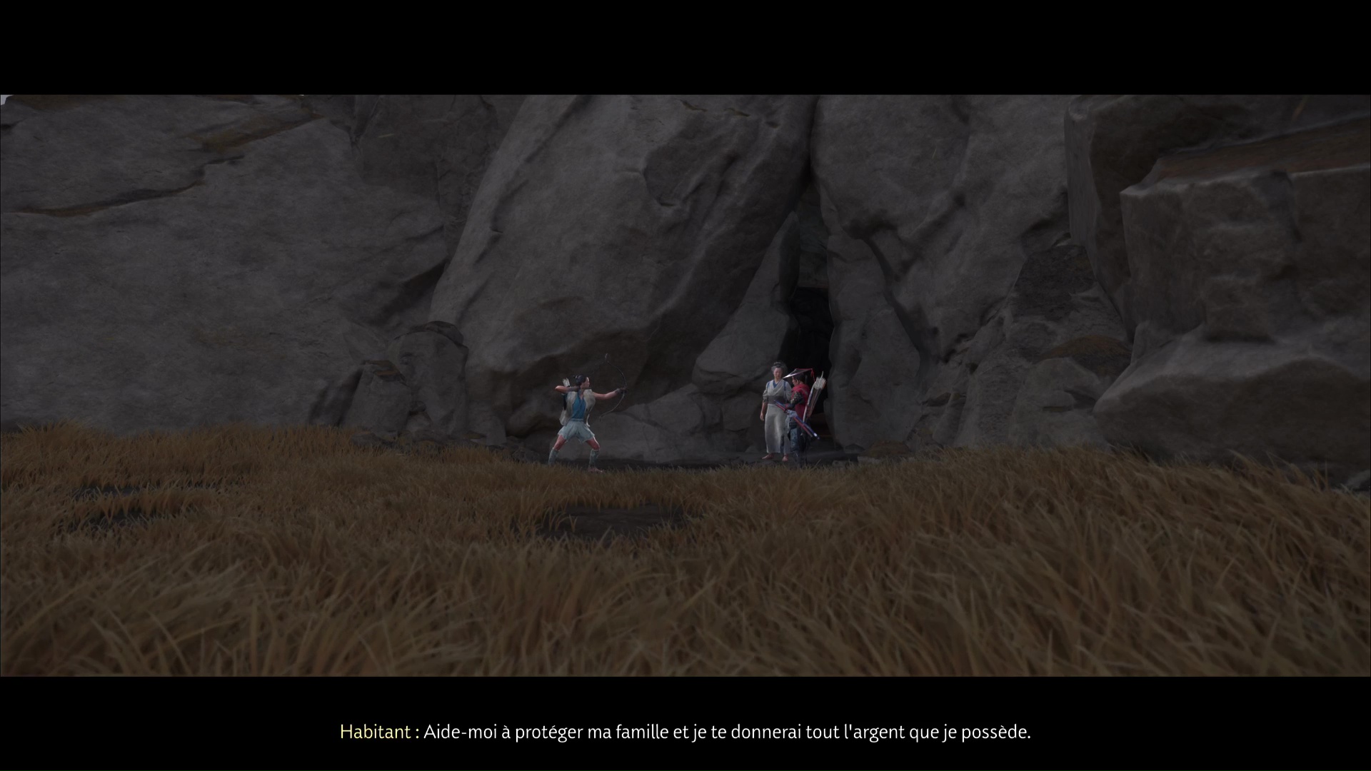 Une dernière vague débarquera enfin depuis le même endroit que la première, avec un nouvel archer à surveiller du coin de l’œil, puis une brute face à laquelle il faut rester prudent. Allez aider votre allié d’un soir s’il se fait attaquer. Une fois l’ultime ennemi vaincu, vous serez téléporté dans la grotte.