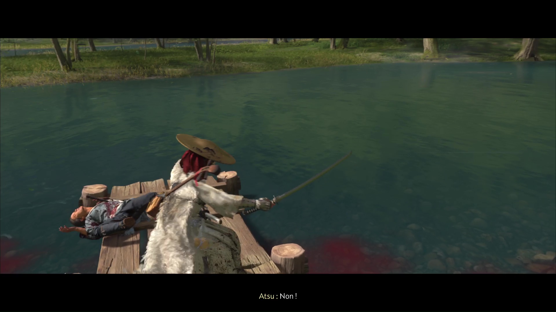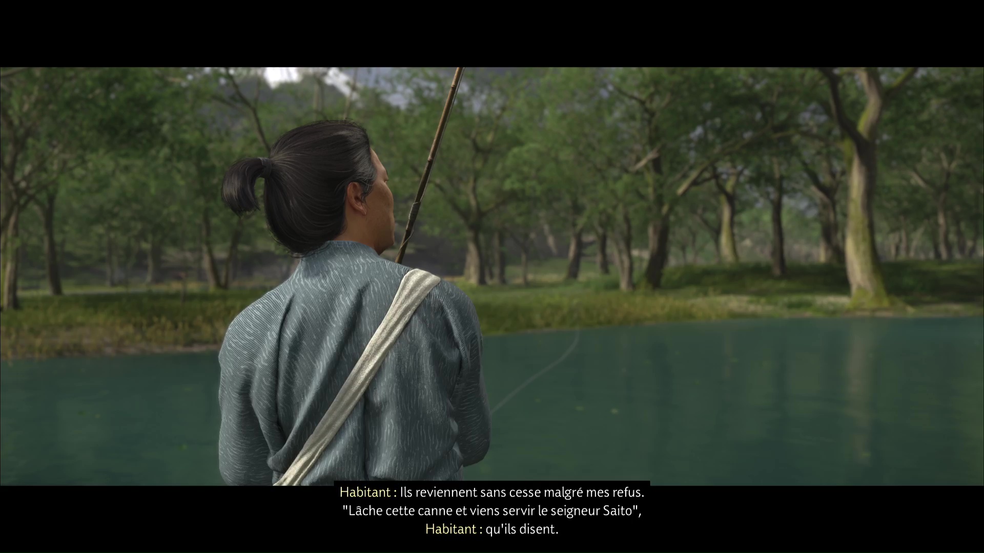 Approchez et parlez-lui. Il vous prendra d’abord pour un homme de Saito souhaitant le recruter. Notre pêcheur souhaite en effet rester là, à mener sa vie tranquille. Hélas, les hors-la-loi reviennent à la charge.