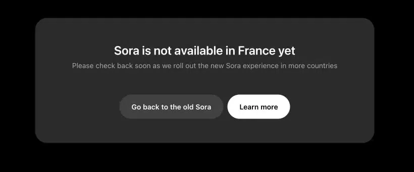 Mais il y a un hic car Sora 2 est dispo uniquement aux USA et au Canada. Le reste du monde, dont l’Europe, est donc bloqué. Mais rassurez-vous, je vais vous expliquer comment y accéder.
