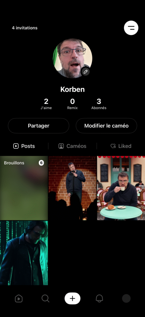 Le système d’accès est en invitation pour l’instant et chaque personne invitée reçoit 4 codes à partager. Maintenant si vous voulez tester Sora 2 et que vous êtes parmi les 4 premiers à m’envoyer un mail, je vous file un de mes codes d’invitation. Après ça, vous pourrez à votre tour inviter 4 personnes.