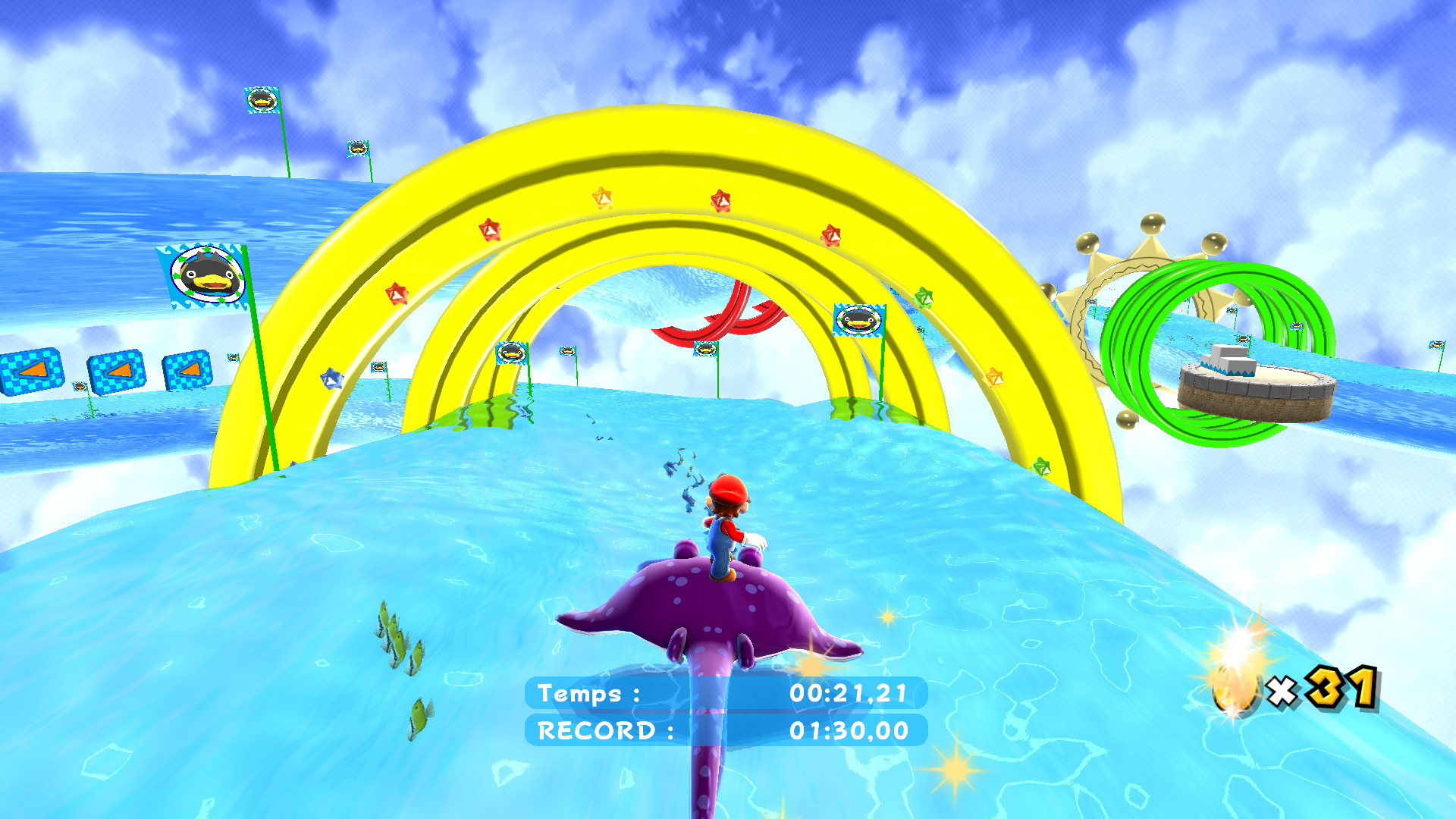 Parlons à présent de la bande-son, toujours aussi iconique et reconnaissable, et que l’on pourra retrouver à la manière d’une playlist dès l’écran-titre des deux jeux, et donc pour la première fois pour Super Mario Galaxy 2. Cela était déjà présent pour la re-sortie en 2020 de Super Mario Galaxy. Le jeu en coopération est également présent, ainsi qu’un mode Assistance comparable à celui de Super Mario Odyssey, qui va venir doubler votre santé et vous ramènera une fois sur la terre ferme en cas de chute dans le vide (ce qui n’arrive jamais bien entendu).