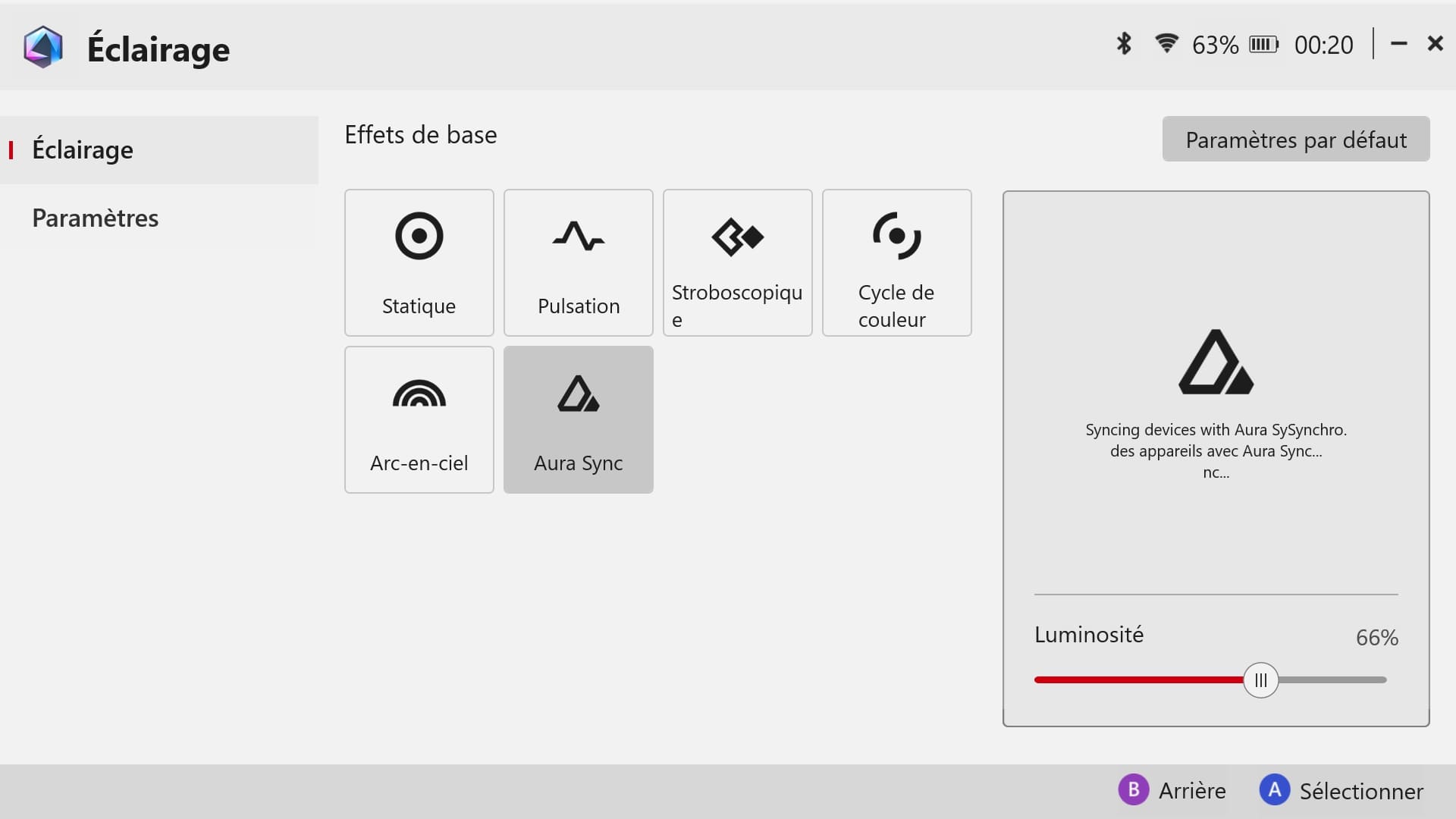La batterie n’a pas été tellement améliorée depuis la sortie de la ROG Ally X. La batterie est de type Li-ion à 4 cellules, avec une autonomie de 80 Wh, ce qui équivaut aux composants utilisés pour la ROG Ally X. À titre d’information, la ROG Ally première du nom comportait une batterie de 40 Wh et la ROG Xbox Ally vous permettra de profiter d’une batterie à mi-chemin, à 60 Wh. La gestion de l’éclairage RGB est aussi disponible si vous souhaitez davantage économiser de la batterie.