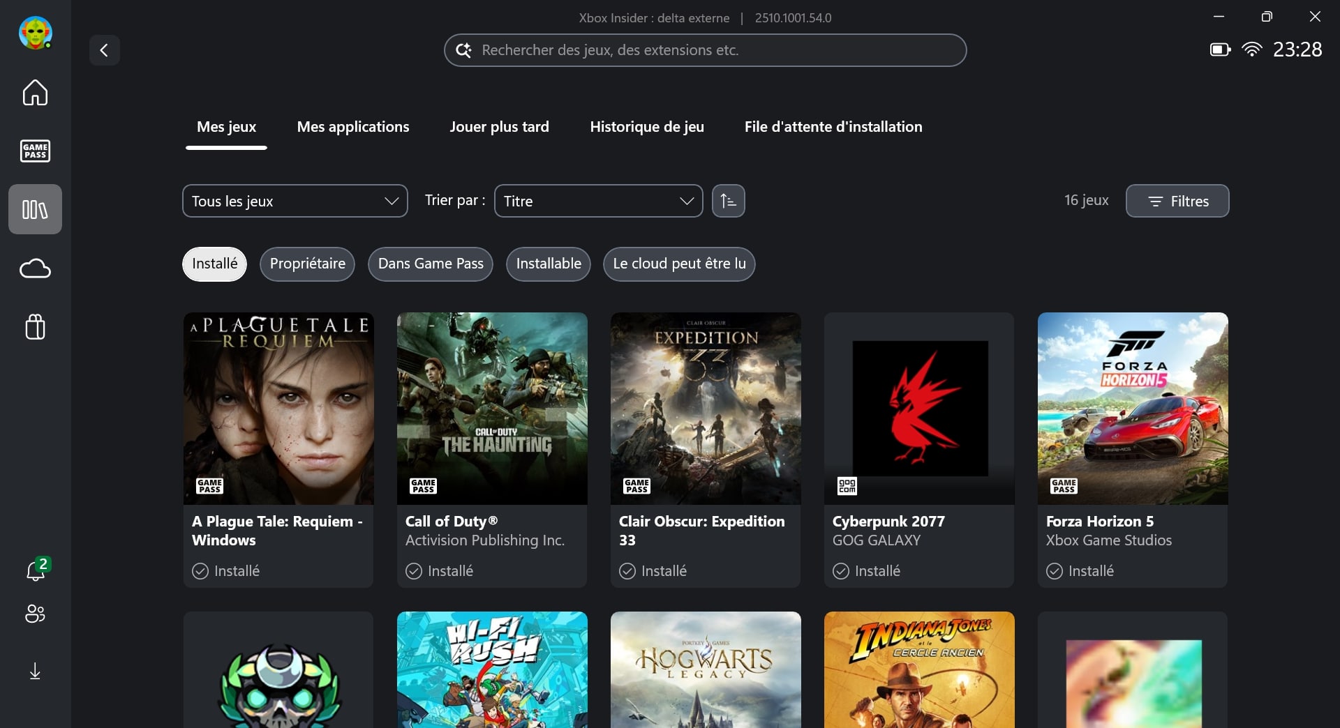 Puisqu’il s’agit d’un mini-PC portable et non réellement d’une console portable, vous pouvez tout à fait vous en servir pour vos travaux de bureautique avec un clavier externe, ou bien pour regarder des films sur vos plateformes de streaming préférées. L’ergonomie et le confort d’usage au quotidien seront ainsi à réévaluer en fonction de vos préférences, mais sachez que c’est possible. Bien entendu, l’usage premier de ce genre de bécane est de vous permettre de jouer à vos jeux vidéo préférés en déplacement ou en tout cas dans une zone même sans couverture internet si vos jeux sont installés en local. Pas de surprise ici : l’installation des jeux se fait aussi simplement que sur PC, en choisissant son répertoire, avec l’aide des logiciels tiers, ou bien via la toute nouvelle application Xbox PC récemment déployée et qui reprend ici toutes les boutiques pour les faire apparaître dans son menu.