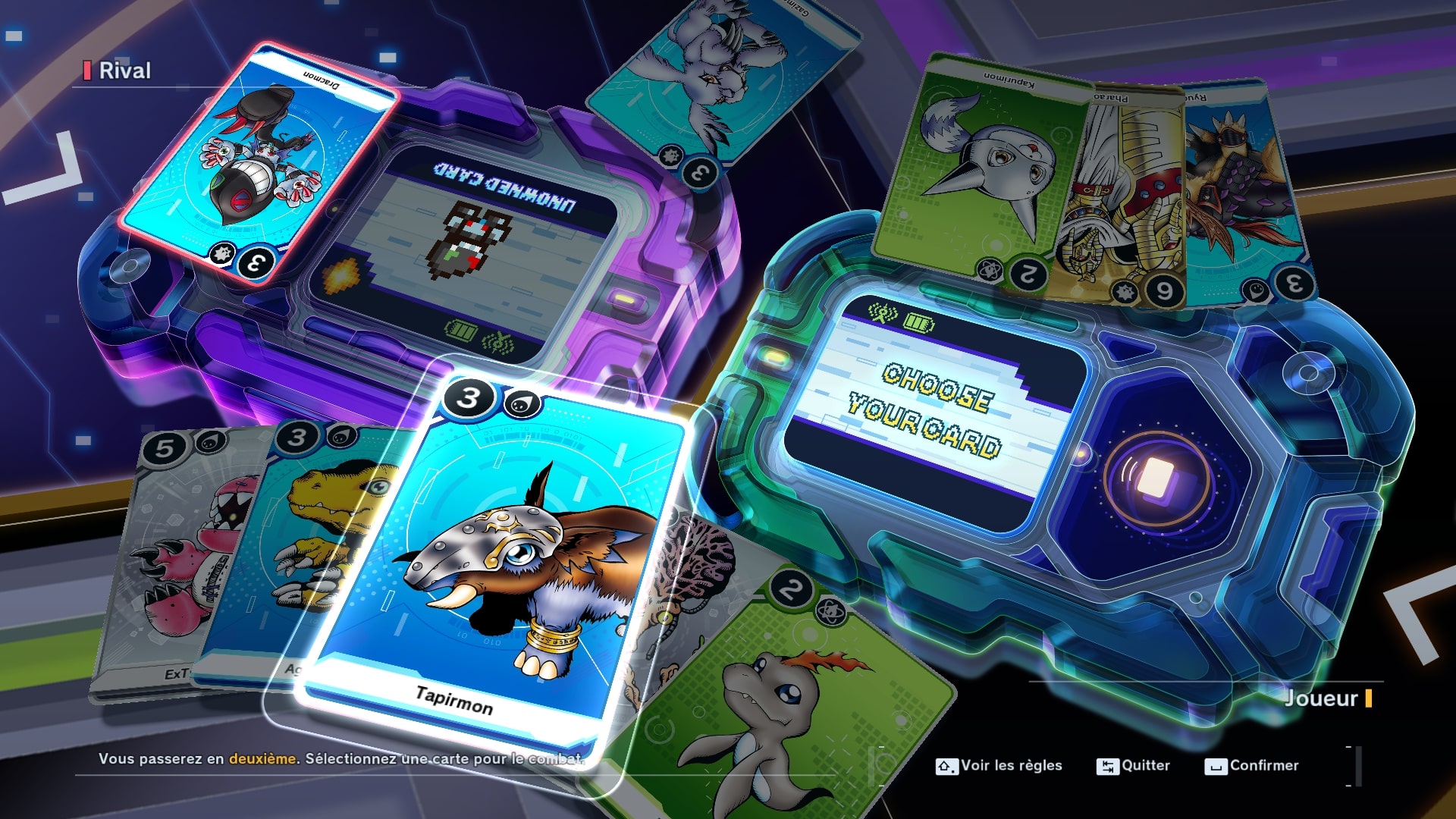 Conditions de test : Test réalisé à l’aide d’une édition Ultimate numérique Steam fournie par l’éditeur. Celle-ci a tourné en configuration graphique Élevée sur un PC portable AORUS 17H BXF (2023) équipé d’un processeur Intel Core i7-13700H (2,4 GHz), d’une NVIDIA GeForce RTX 4080 Laptop, d’une mémoire vive de 16 Go de RAM DDR5, d’un écran LCD 17,3 pouces de résolution 1080p et d’une manette Xbox One. Notre session a duré environ 56h, temps nécessaire pour terminer en mode de difficulté « Équilibré » la campagne principale, une majorité de missions secondaires, une partie du contenu annexe (combats de cartes (Jogmon), exploration…), ainsi que rencontrer 316 Digimon et enregistrer les données complètes de 246 d’entre eux dans notre « Digidex ». Au total, 31 trophées/succès sur 46 ont été obtenus. Cet article est garanti sans spoilers majeurs et le point de vue exposé dedans est celui d’une personne ne connaissant la licence que de nom. Notez également que nous avons joué avant et après le déploiement du patch day one et, si nous n’avons pas eu la possibilité d’en profiter, un mode « New Game + » est accessible après avoir terminé une première run. Celui-ci vous permet d’en commencer une nouvelle dans deux modes de difficulté supplémentaires (Méga et Méga +), tout en conservant une partie de votre inventaire lié à votre sauvegarde précédente (compétences d’Agent, points d’Anomalie, argent, etc.) Bonne lecture !
