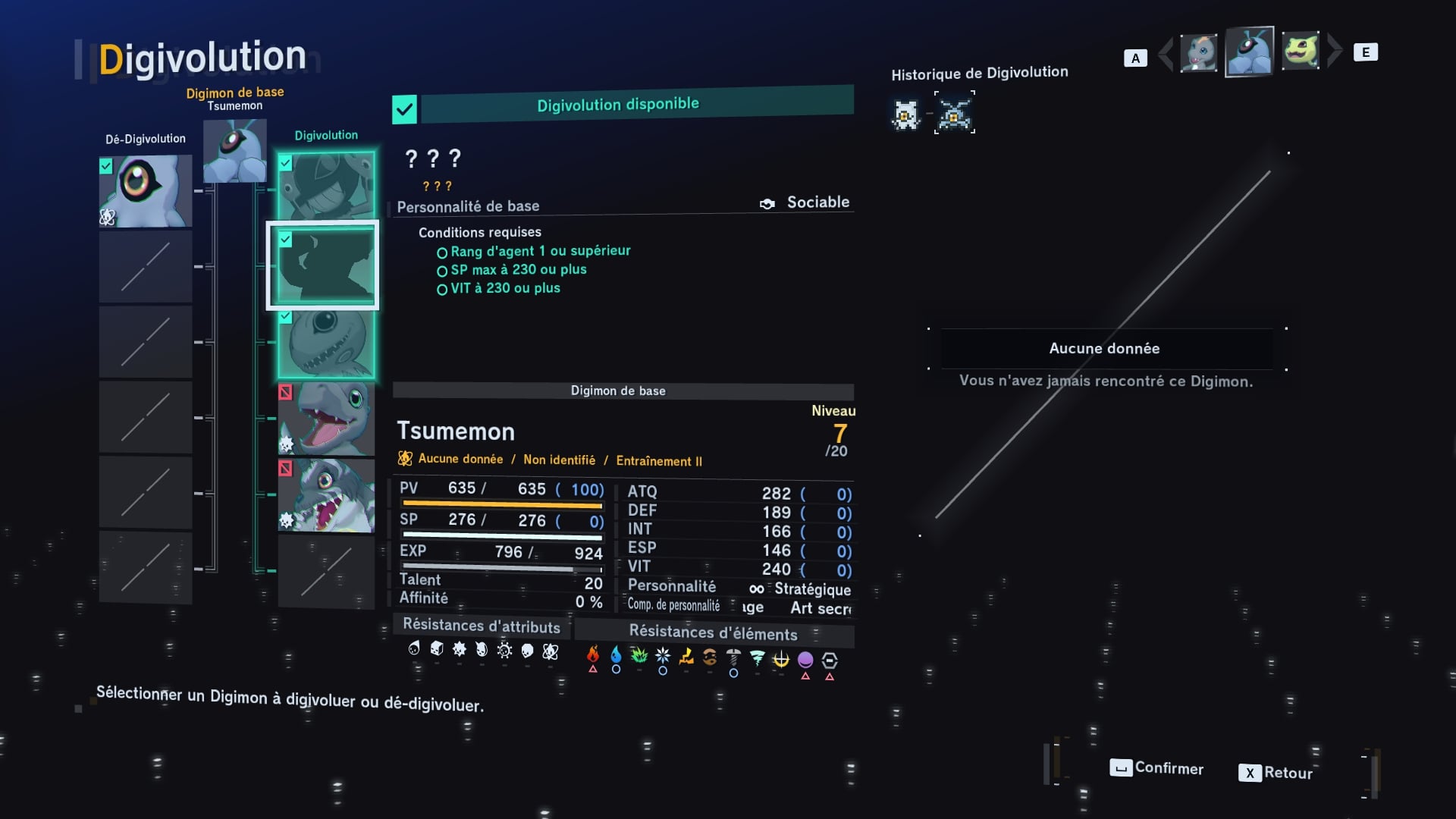 Concernant la digivolution, ce système non-linéaire est l’opportunité de débloquer des versions générationnelles différentes d’une créature. C’est très pratique pour tenter de libérer son plein potentiel à terme, faciliter notre progression, et compléter notre « Digidex » un peu plus rapidement, sans avoir besoin de farmer pendant des dizaines et des dizaines d’heures. Cependant, avant de passer d’une forme à une autre, il ne faut pas oublier que le faire réinitialisera l’XP de notre « monstre » au niveau 1. De plus, cette action n’est envisageable qu’en remplissant des conditions précises et qui sont essentiellement liées aux caractéristiques possédées par notre Digimon.