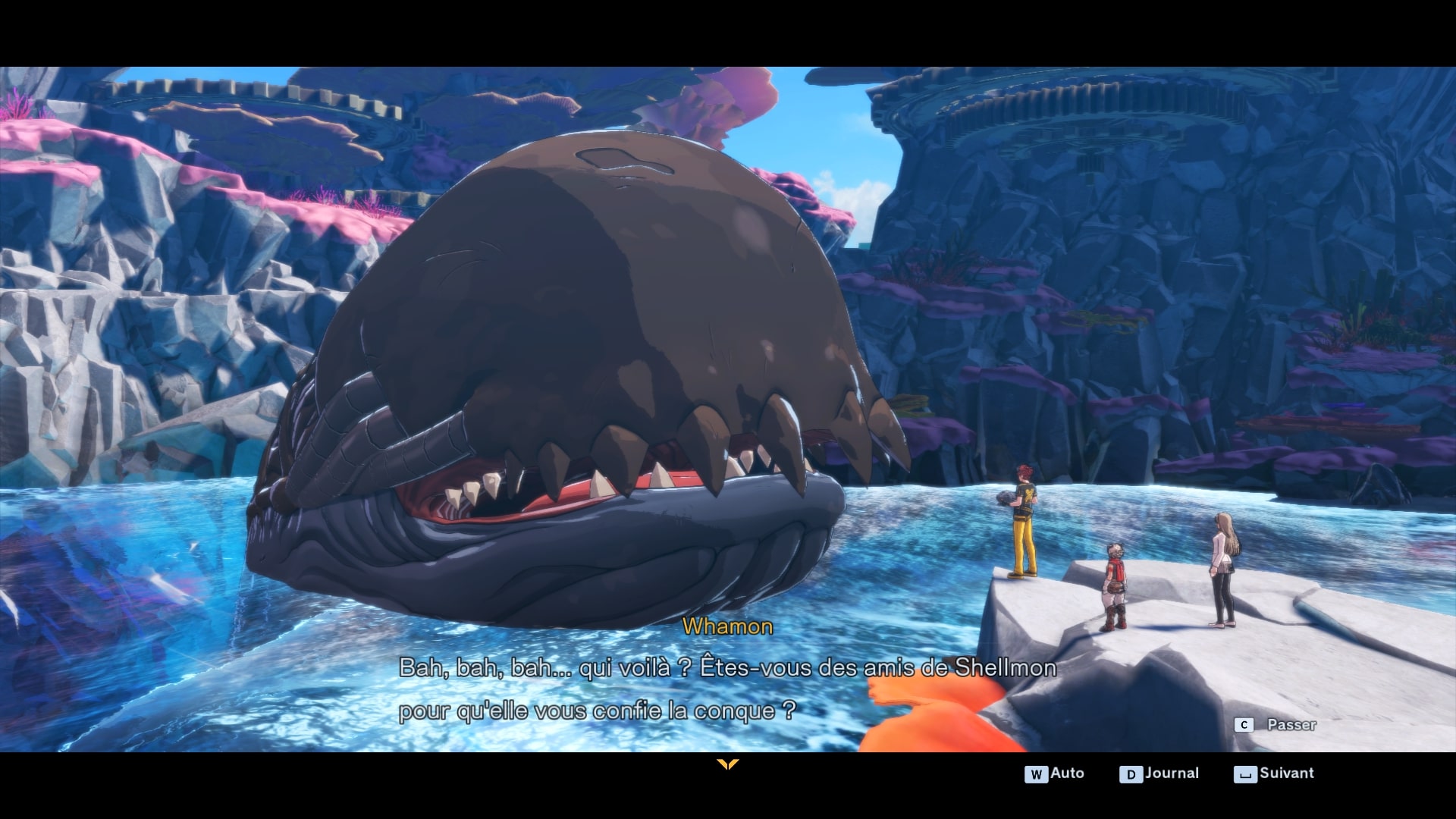 Bien que des longueurs subsistent et que son arc final soit assez poussif et convenu, la narration est mieux rythmée, intéressante à suivre dans l’ensemble, et nous a surpris plus d’une fois. Certains moments sont même parvenus à nous toucher ou nous faire sourire. Nous pensons notamment à ceux dédiés à Aegiomon et Inori Misano, un Digimon et une jeune lycéenne dont les liens vont être mis à rude épreuve tout au long de l’aventure. Nous avons aussi aimé le travail d’écriture autour de plusieurs alliés masculins et féminins partageant l’affiche à nos et leurs côtés, tels que Merukimon, Minervamon, Shellmon et Sirenmon. Mirei Mikagura, la mystérieuse réceptionniste du Cinéma de l’Entremonde, campe également brillamment son rôle de bout en bout.