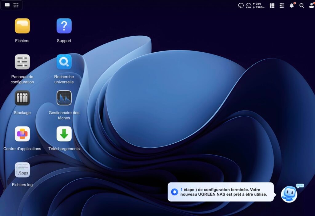 UGREEN met en avant son système “NASync OS”, une interface moderne, propre, qui n’essaie pas de singer Synology ou QNAP mais propose les fonctionnalités essentielles : gestion des dossiers partagés, snapshots, applications intégrées, accès à distance, partage de fichiers, et même des options avancées comme le montage NFS ou le support SMB multicanal. L’installation est rapide : on insère les deux disques, on lance l’initialisation, et on est opérationnel en moins de dix minutes. C’est simple, clair et rapide.