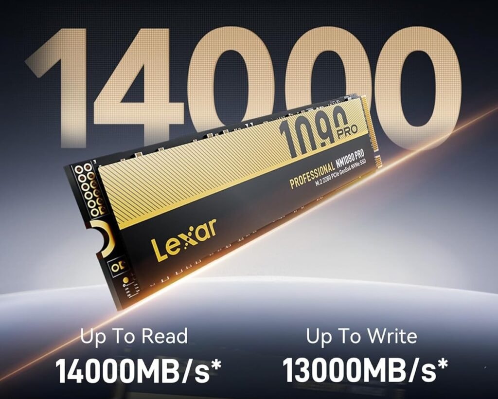 , un SSD PCIe 5.0 qui monte en théorie à 14 000 Mo/s en lecture et 13 000 Mo/s en écriture.