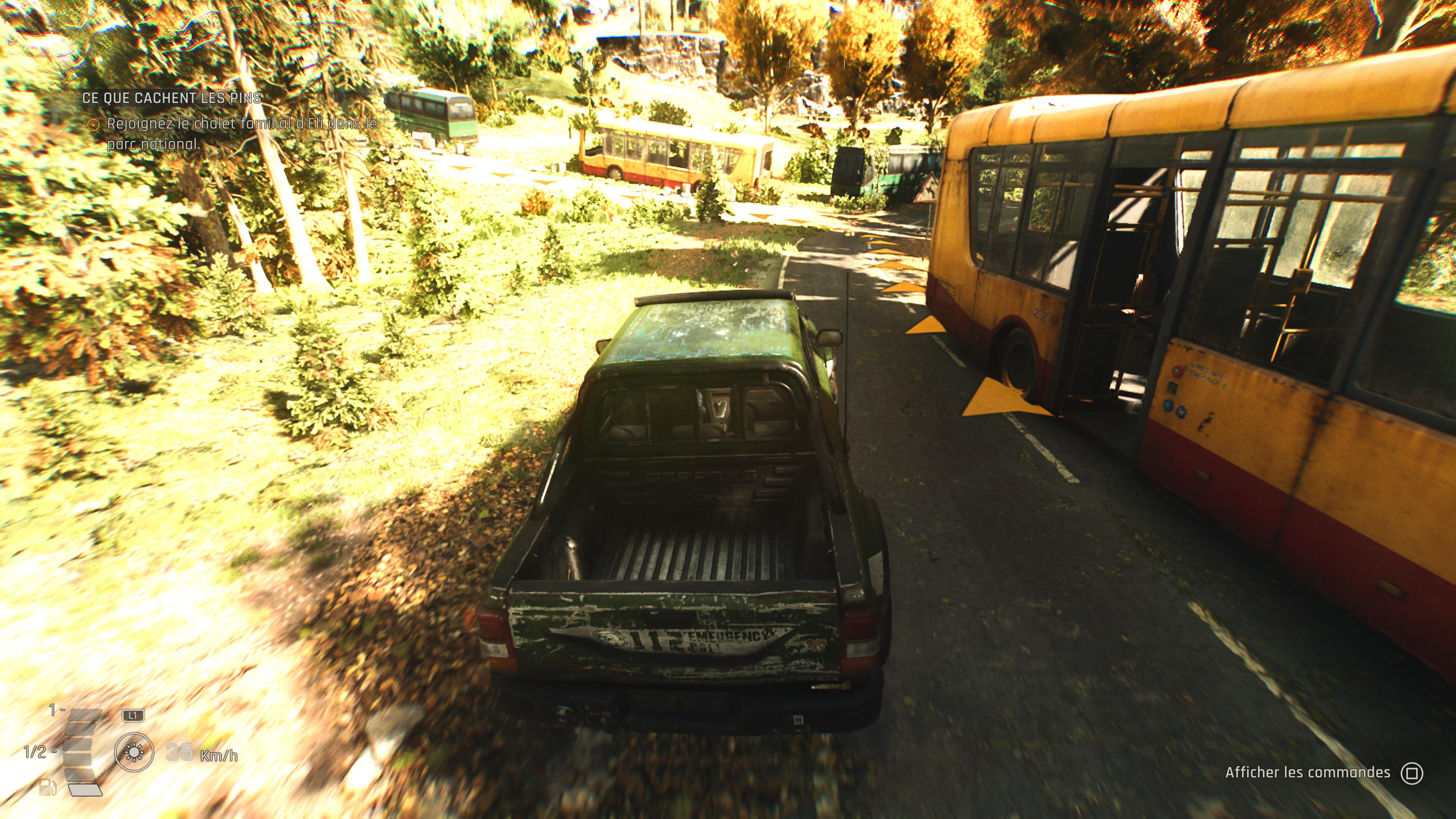 On se retrouve ainsi très souvent à devoir courir vers son prochain objectif, d’autant que le jeu ne propose pas de voyage rapide et que les allers-retours entre les différents personnages sont nombreux. Une façon de gonfler artificiellement la durée de vie que nous n’avons pas spécialement appréciée. Heureusement, pour rendre certains trajets plus courts, et plus amusants, on peut parfois tomber sur des véhicules encore en état de circuler.