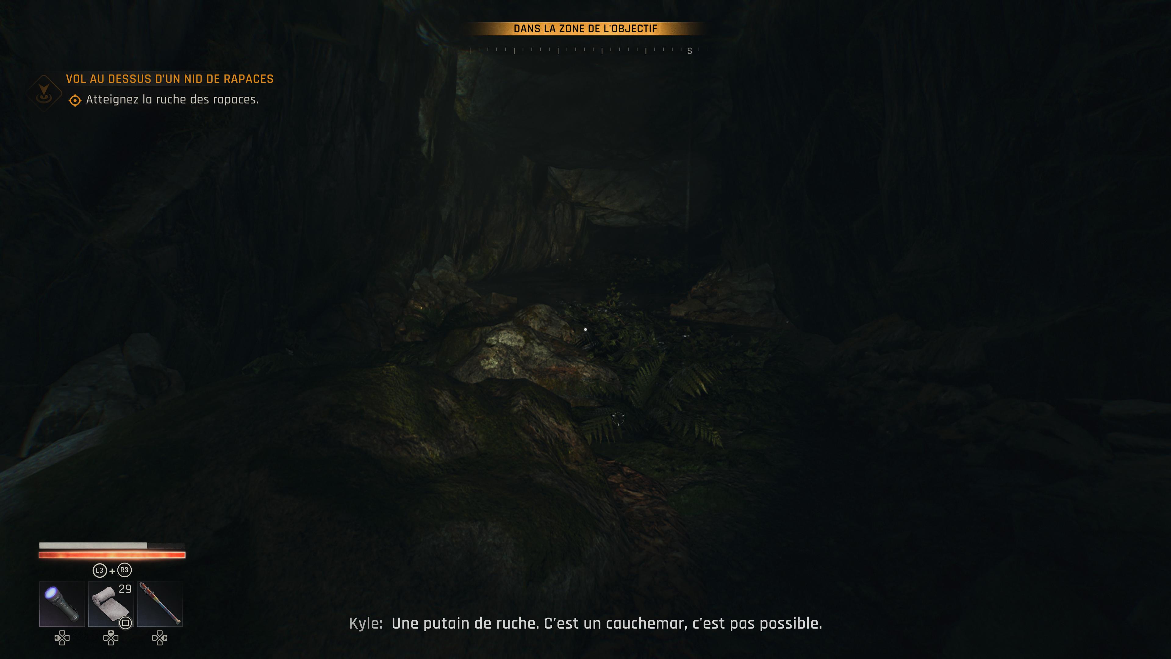 En plus des quêtes annexes proposées par les quelques habitants de la vallée, on trouve des zones sombres. Il s’agit de commerces ou d’habitations totalement plongées dans le noir (comme le nom l’indique). Le danger y est donc plus présent, avec de nombreux infectés à décimer, mais également des récompenses à dénicher. Il s’agit principalement de ressources (tissus, produis chimiques, ferraille, etc.) que l’on peut ensuite utiliser pour fabriquer ou améliorer son équipement ou de trésors que l’on pourra revendre aux marchands. Certains lieux abritent aussi des plans ou des tenues uniques à récupérer. Ces tenues, en plus de proposer différentes statistiques, influent aussi sur l’apparence de Kyle.