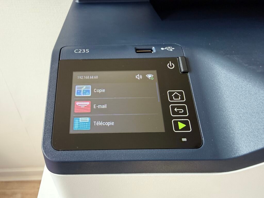Ce que j’ai kiffé d’entrée, c’est l’installation. Vous branchez le câble USB, Ethernet ou vous la connectez en Wi-Fi, et en quelques minutes c’est plié. Xerox a également bien bossé l’interface, avec un