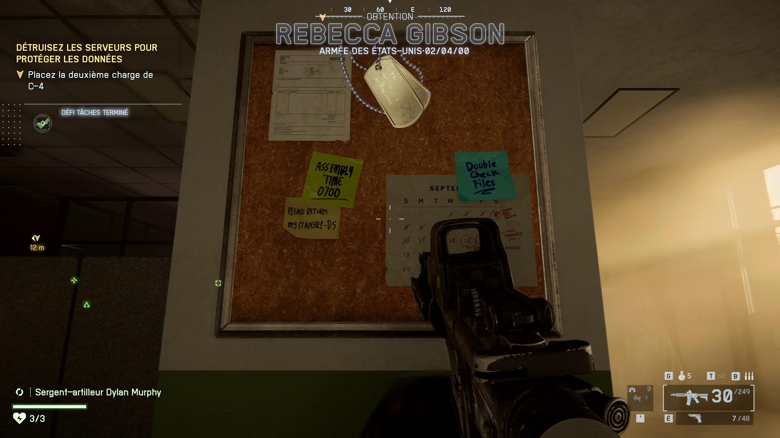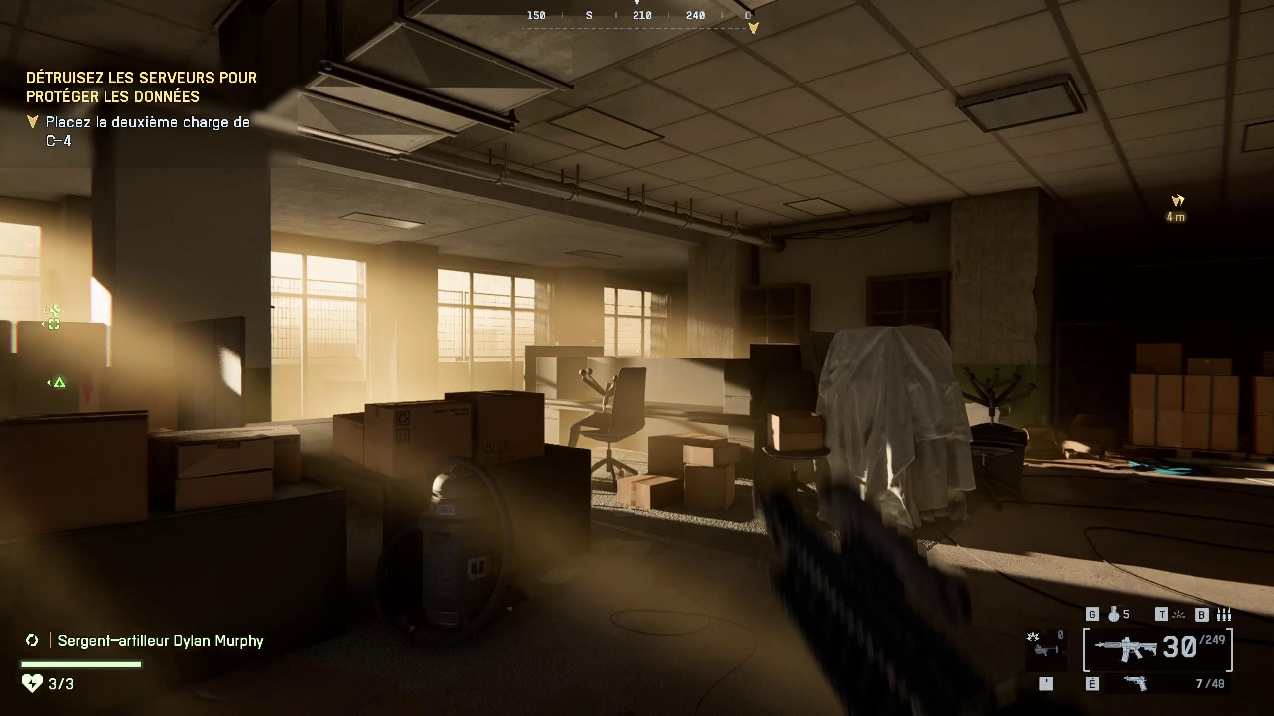- Le deuxième se trouve dans les bureaux, là vous placez le second pain de C4. Regardez à gauche (là où il y a de la lumière) et cherchez le cadre sur le pilier pour le dénicher.
