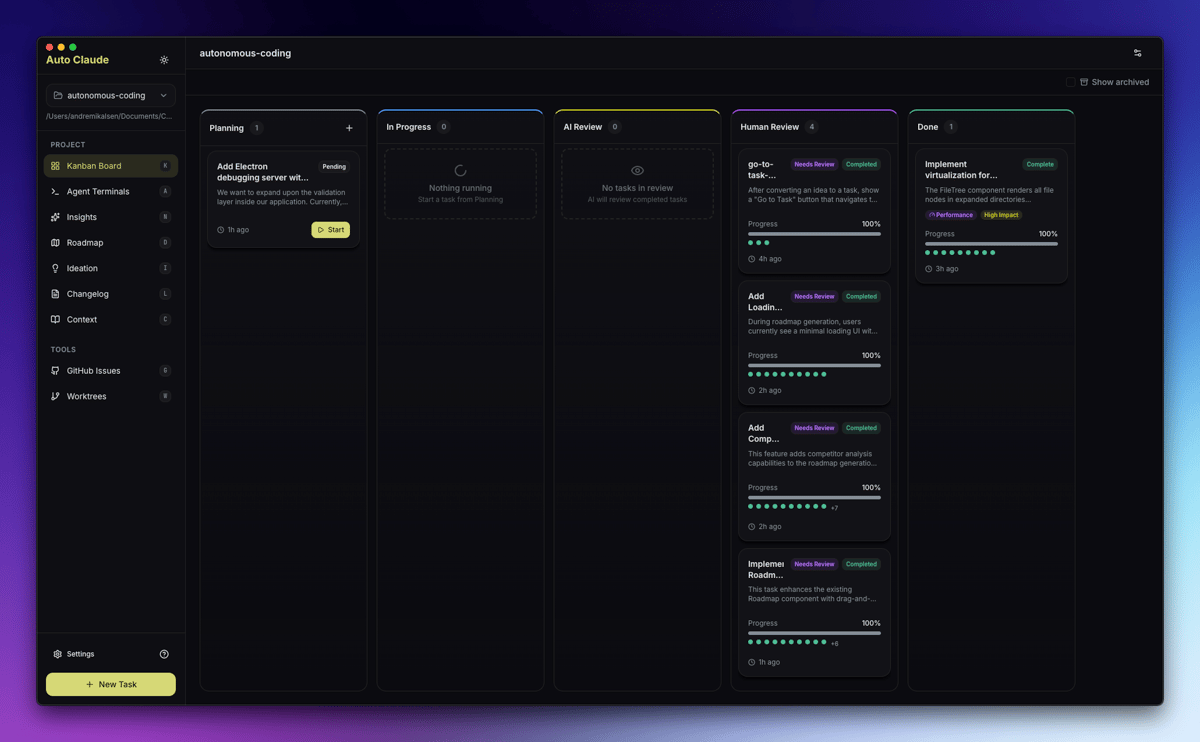 c’est vrai. C’est un framework CLI en Python qui permettait de faire bosser Claude en autonomie. Mais Auto-Claude, alalalala, c’est un autre délire les amis ! Déjà c’est une vraie application desktop avec interface graphique, tableau Kanban pour gérer vos tâches, et surtout… 12 terminaux qui peuvent tourner en parallèle. Oui, DOUZE agents Claude qui bossent simultanément sur votre code pendant que vous candy crushez pépouze dans les WC de votre entreprise.