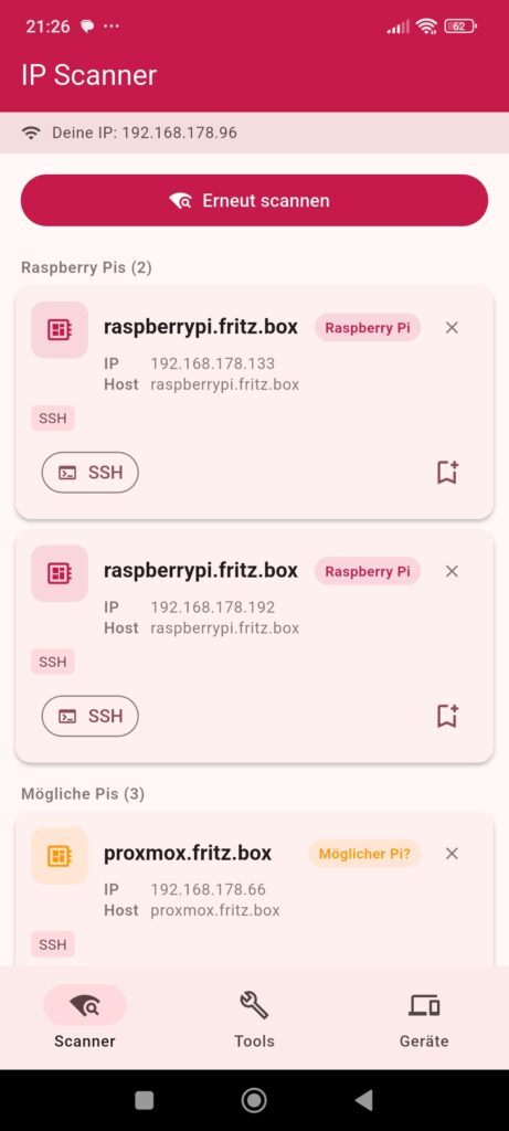 Un développeur du nom de Philipp a sorti une appli Android qui résout ça en repérant automatiquement tous les Pi présents sur le LAN.