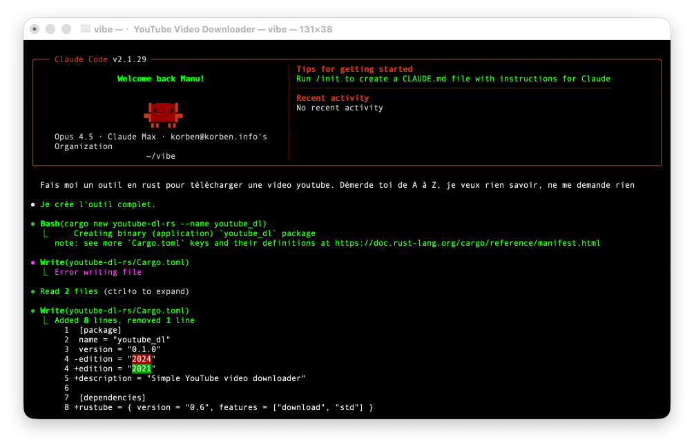 Et c’est tout ! Si ça fait de la merde, ce sera dans la VM et vous ne risquerez rien ! Les fichiers sont bien sûr créés et dispo dans le répertoire dans lequel vous avez lancé vibe. Mais tout sera exécuté dans la VM donc y’a plus aucun risque.