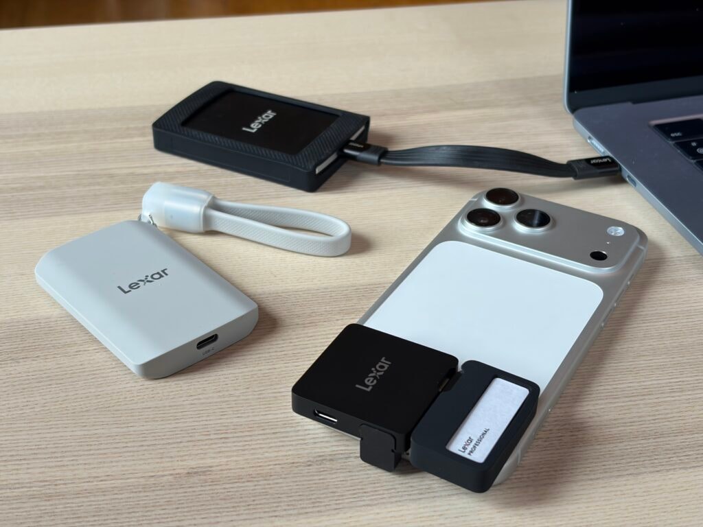 Le Lexar Professional Go avec Hub, lui, cible clairement les vidéastes iPhone : un mini setup complet pour filmer en ProRes tout en branchant micro et lumière.